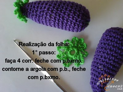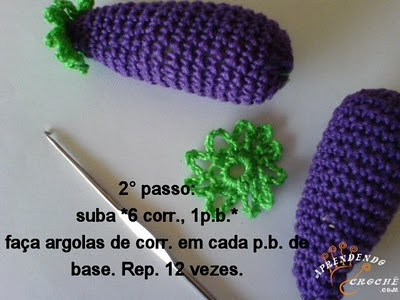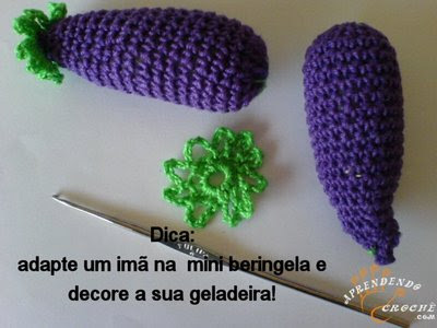 Um passo a passo de uma berinjela de crochê que pode ser usada como ímã de geladeira, um chaveiro ou o que sua imaginação mandar. Fica super fofo e é muito fácil de fazer.