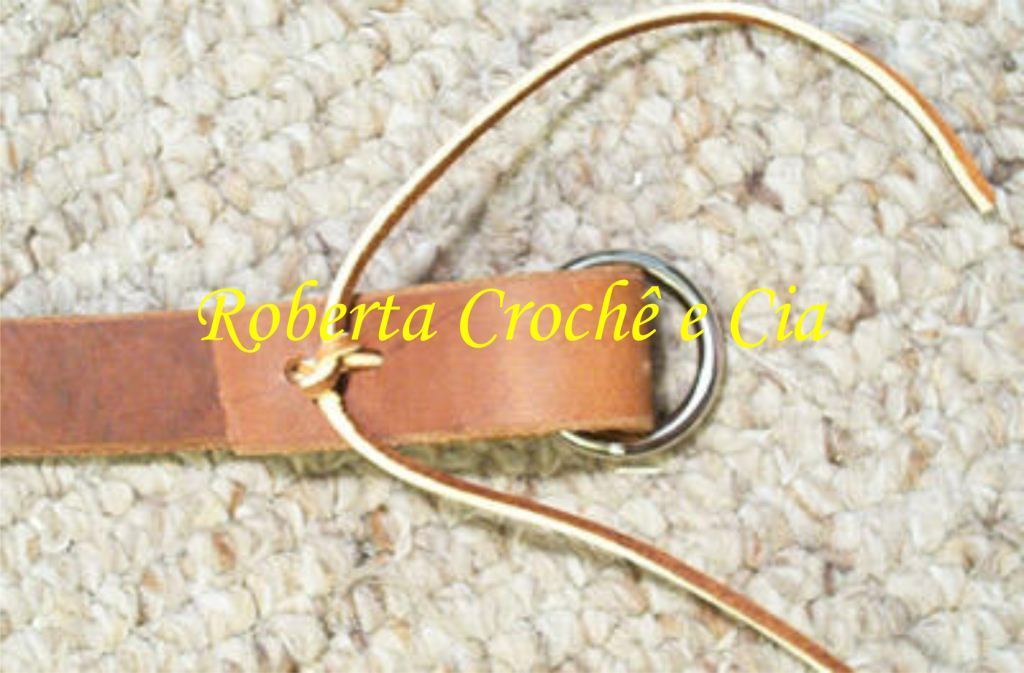 Depois de furadas, agora vamos usar cordão de couro para começar a montar a alça.