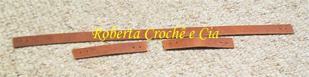 1- Corte a tira de couro em três partes, uma de 24 cm e duas de 6 1/2 cm de comprimento como mostra a foto abaixo.