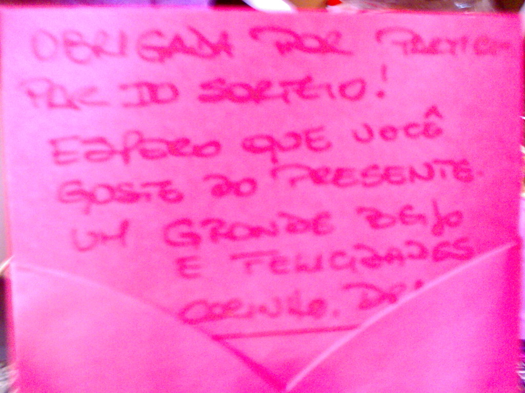 A ganhadora receberá um e-mail meu e terá que mandar seus dados em três dias, caso contrário irei sortear outra coleguinha!!!